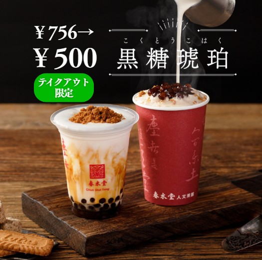 【台湾カフェ 春水堂】~LINE登録限定~黒糖琥珀タピオカラテ1コイン!