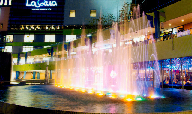 「水」・「音」・「光」の共演、音楽噴水。
