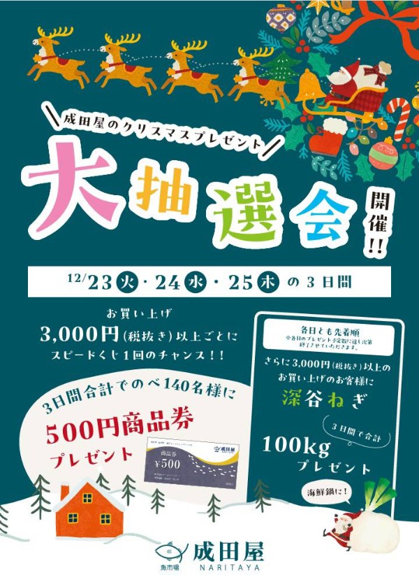 魚市場成田屋 Xmasプレゼントキャンペーン♪
