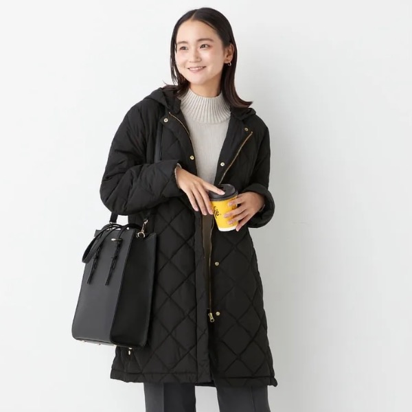 軽くて暖かい人気のフード付き中綿キルティングコートです。