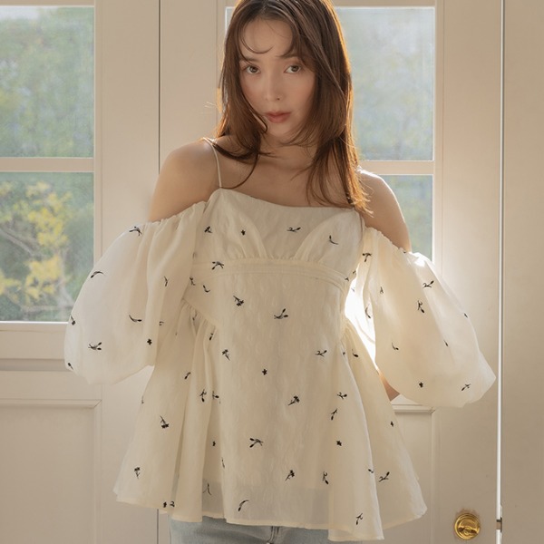 チューリップ柄のふくれジャガード生地に刺繍を施したこだわりのブラウス。