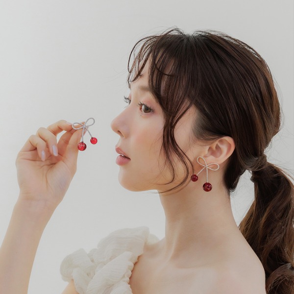オリジナルで描き起こしたチェリープリントを施した大ぶりのリボンが目を惹きます。