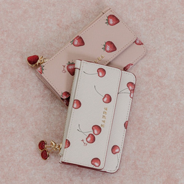 チェリーとストロベリーのオリジナルプリントが目を惹くウォレット。