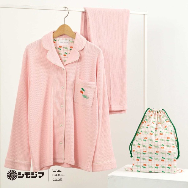 パジャマを入れられるペア柄の巾着付きで、旅行用としても活躍☆