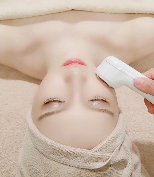 同時に水素を含んだ吸引洗浄機器で顔を丁寧にやさしく洗浄後に