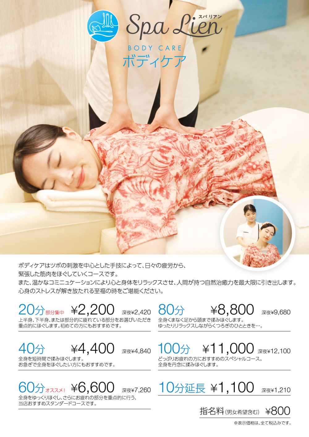 | 店舗名 | ボディケア/整体&リフレクソロジー スパ リアン |