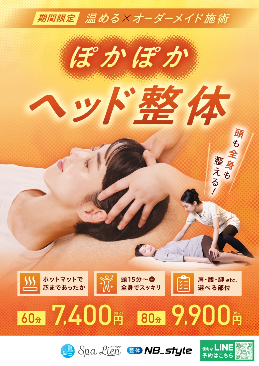 お身体に合わせた整体コースに、ヘッドの調整をプラス♪