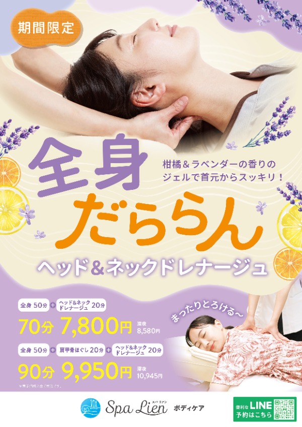 予告【ボディケア】全身だららんヘッド&ネックドレナージュ