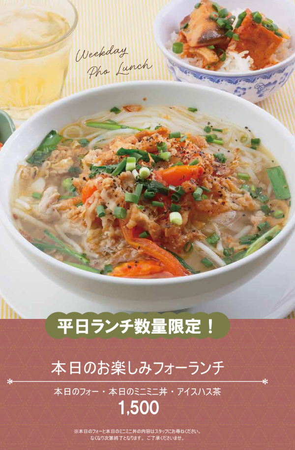 本日のフォー・本日のミニ丼・アイスハス茶のセット 1,500円