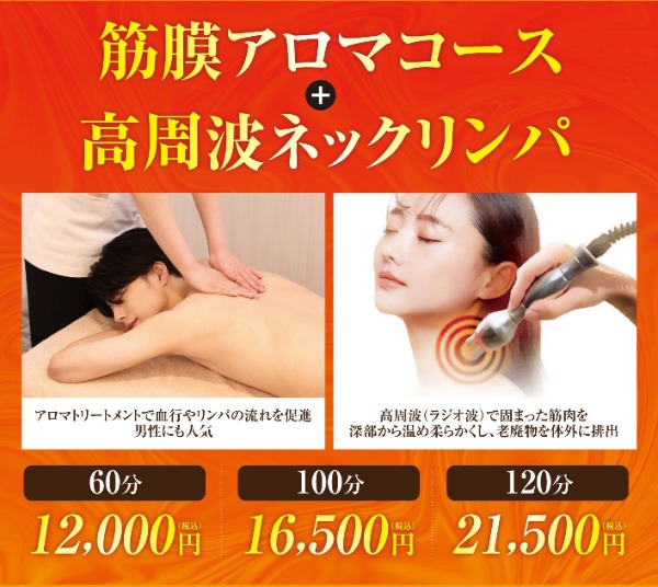 100分 16,500円 (筋膜アロマ背面+2パーツ)★当店イチオシ★