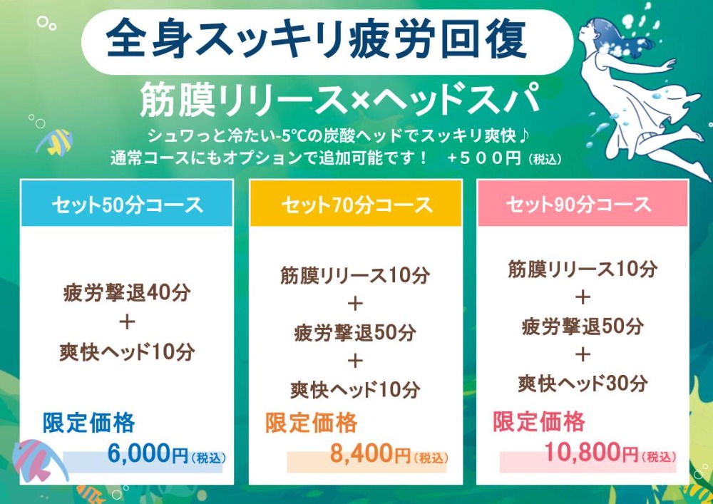 当店一番人気の筋膜リリース×疲労撃退で、お身体をガッツリほぐした後に、