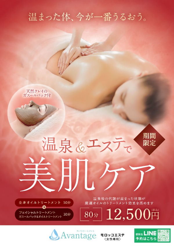 全身オイルトリートメント50分+フェイシャルトリートメント30分(ガスールパック&オイルトリートメント)