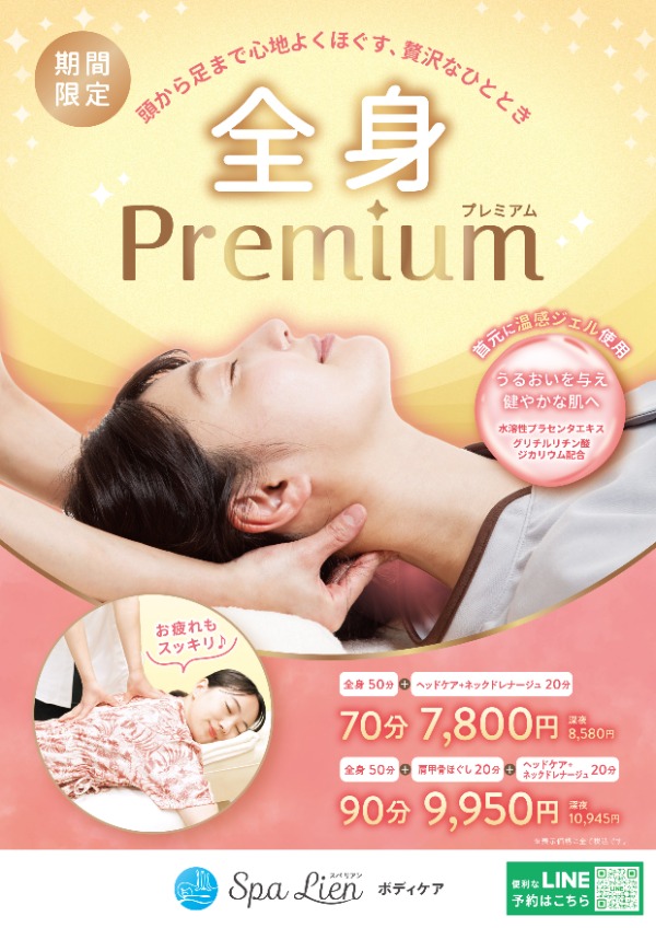 全身をじっくり揉みほぐし+ネックドレナージュでお疲れをリセット